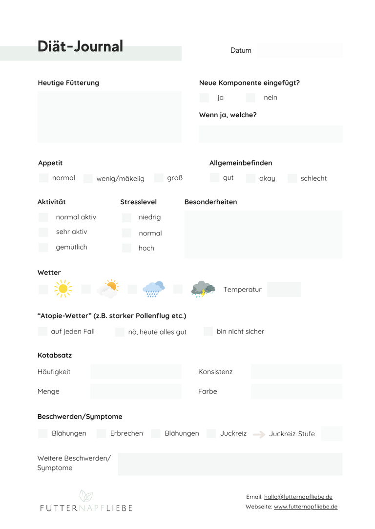 Hilft dir, Veränderungen während einer Diättherapie sichtbar zu machen: Symptome, Energielevel, Appetit, Gewicht, Wohlbefinden.